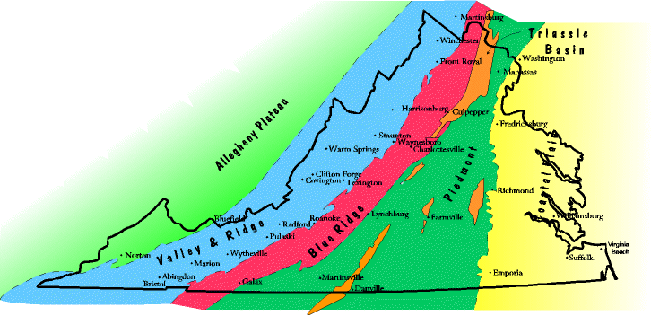 2 regions of VA that are mountainous,  | Blue Ridge, Valley and Ridge |