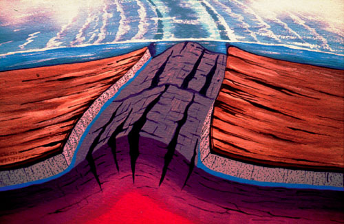 Divergent boundary at oceanic plates | Mid-Ocean ridge,  |