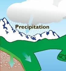 | precipitation | Rain, snow, or hail that fall from clouds.,  |