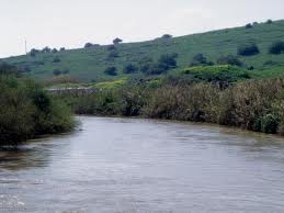 | river | A large, flowing body of water that usually empties into a sea or ocean,  |