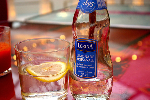 | a sparkling lemon flavored beverage,  |