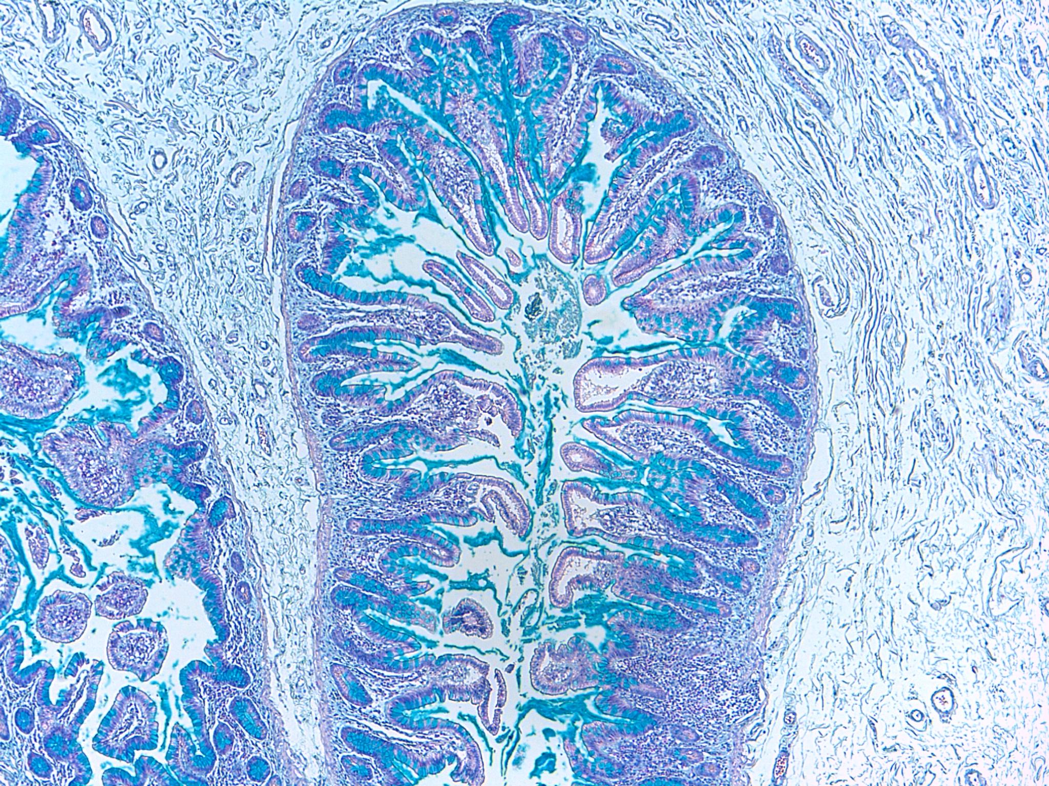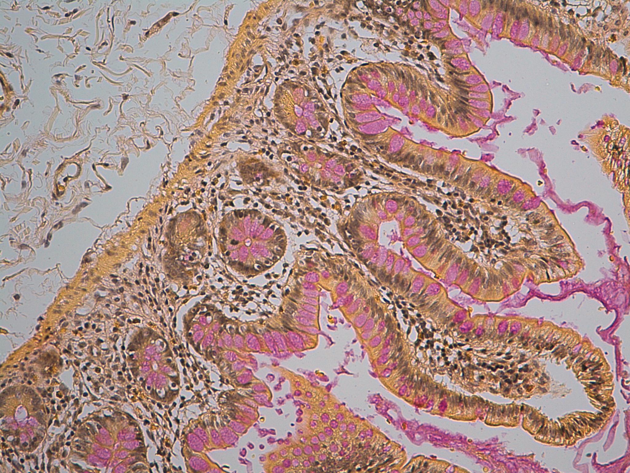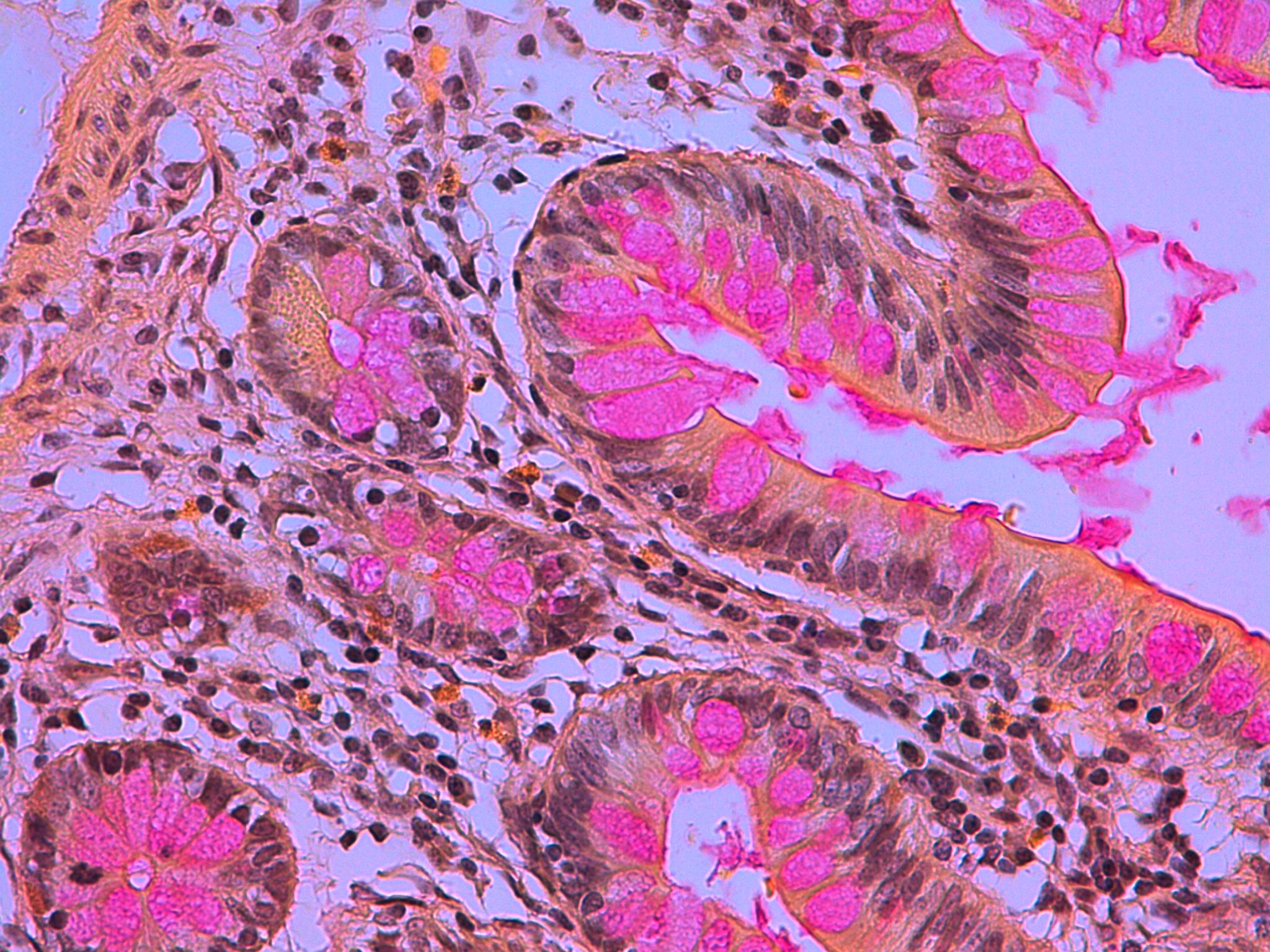 This section of small intestine can also be stained by?,  | Mucicarmine |