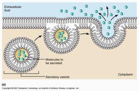 | a substance is released from within the cell through a vesicle to the cells surface to let the substance out | exocytosis |