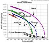 | Molar Heat of Vaporization | The quantity of energy required to evaporate 1 mole, or a unit mass, of a liquid, at constant pressure and temperature. Also known as enthalpy of vaporization; heat of evaporation; latent heat of vaporization.,  |