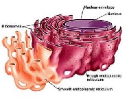 | Endoplasmic Reticulum | A network of tubular membranes within the cytoplasm of the cell, occurring either with a smooth surface (smooth endoplasmic reticulum) or studded with ribosomes’ (rough endoplasmic reticulum), involved in the transport of materials.,  |