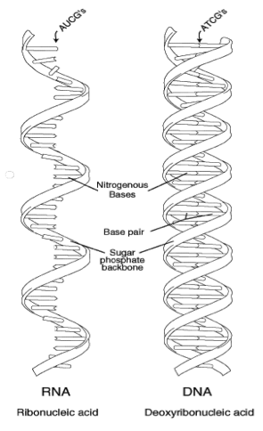 | RNA (ribonucleic acid) | A long linear polymer of nucleotides found in the nucleus but mainly in the cytoplasm of a cell where it is associated with microsomes; it transmits genetic information from DNA to the cytoplasm and controls certain chemical processes in the cell,  |
