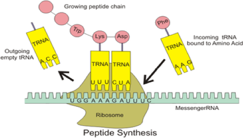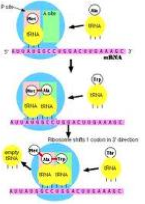 | Anticodon | Is a small RNA molecule (usually about 73-95 nucleotides) that transfers a specific active amino acid to a growing polypeptide chain at the ribosomal site of protein synthesis during translation.,  |