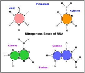 | Nitrogen Base | The basic component of nucleic acids; composed of a nitrogen-containing molecule of purine or pyrimidine.,  |