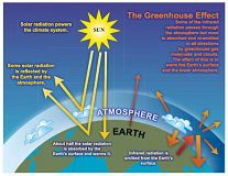 | Greenhouse Effect | Warming that results when solar radiation is trapped by the atmosphere; caused by atmospheric gases that allow sunshine to pass through but absorb heat that is radiated back from the warmed surface of the earth,  |