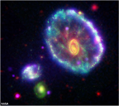 | Galaxy | Any of numerous large-scale aggregates of stars, gas, and dust that constitute the universe, containing an average of 100 billion (1011) solar masses and ranging in diameter from 1,500 to 300,000 light-years.,  |