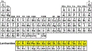 | Lanthanide | The set of chemically related elements with properties similar to those of lanthanum, with atomic numbers from 57 to 71; the rare-earth elements.,  |