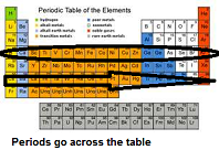 | Period | The elements in a horizontal row of the periodic table.,  |