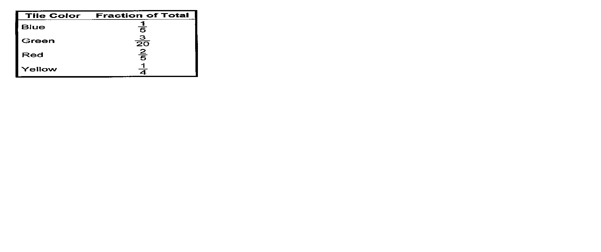 Oscar counted the tiles on his bathroom floor and came up with the following fractions. Which color has the most number of tiles? Which has the least,  | Red = most and Green = least |