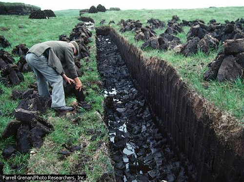 Peat,  | Peat is the first stage in the transformation of vegetation into coal. For hundreds of years, people have cut, dried, and burned it for heating and cooking. This compact, dark-brown material contains about one third less heating value than coal. |