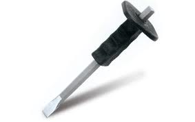 Used to cut off damaged or rusted nuts, bolts, and rivet heads (this image includes a holder),  | chisel |