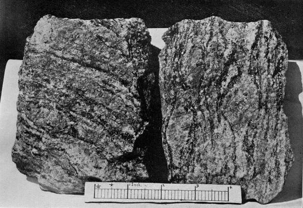 Note grain running up and down the rock,  | Petrified wood (blocky) |