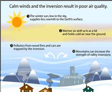 Temperature Inversion | A thin layer of the atmosphere where the normal decrease in temperature with height switches to the temperature increasing with height.,  |