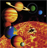 Solar System | The sun and all the objects that revolve around it, including the planets and their moons, asteroids, comets, and meteors,  |