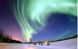 Aurora | Glowing region produced by the interaction of changed particles from the sun and atoms in the atmosphere,  |