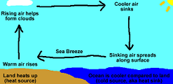 Sea Breeze | is a wind from the sea that develops over land near coasts. It is formed by increasing temperature differences between the land and water, which create a pressure minimum over the land due to its relative warmth.,  |