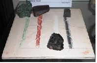 Streak | A line, mark, smear, or band differentiated by color or texture from its surrounding,  |