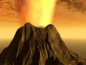 Volcano | An opening in Earth’s surface through which hot, liquid rock flows from deep underground. (2) A mountain formed by a series of volcanic eruptions.,  |
