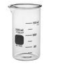 Beaker | A wide, cylindrical glass container with a pouring lip, used especially in laboratories.,  |