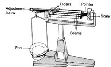 Triple-Beam Balance | A balance consisting of a lever with two equal arms and a pan suspended from each arm,  |