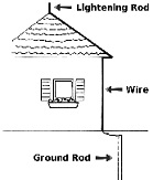Lightning Rod | A metal rod on a building connected to a grounding wire in order to protect the building.,  |