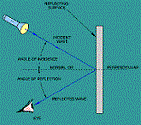 Angle of Reflection | The angle between a reflected ray and a line perpendicular to the surface at the point of incidence,  |
