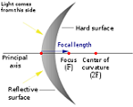 Concave Mirror | A mirror with a surface that curves in ward.,  |
