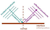 Law of Reflection | When a ray of light strikes a plane mirror, the light ray reflects off the mirror. Reflection involves a change in direction of the light ray. The convention used to express the direction of a light ray is to indicate the angle which the light ray makes with a normal line drawn to the surface of the mirror. The angle of incidence is the angle between this normal line and the incident ray; the angle of reflection is the angle between this normal line and the reflected ray. According to the law of reflection, the angle of incidence equals the angle of reflection.,  |