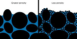 Porosity | The ratio, expressed as a percentage, of the volume of the pores or interstices of a substance, as a rock or rock stratum, to the total volume of the mass.,  |