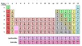 Periodic Table | A table illustrating the periodic system, in which the chemical elements, formerly arranged in the order of their atomic weights and now according to their atomic numbers, are shown in related groups,  |