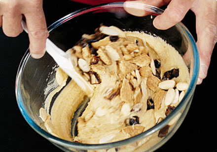 Mix,  | To combine two or more ingredients into one mass by stirring or beating them |