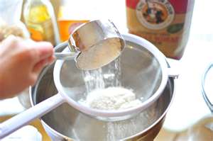 Sift,  | To reduce dry ingredients to finer particles, add air to dry ingredients, or combine dry ingredients by putting them through a sieve |