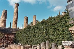 Delphi,  | site of Apollo's most important oracle and the temple complex associated with it. Located in Phocis |