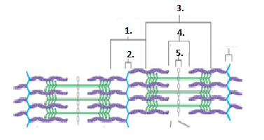 Label the parts of the myosin,  | 1. Rod 2. Hinge region 3. Head |