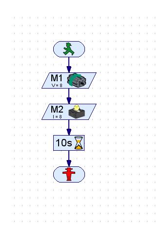 Explain what the program does...,  | Turns motor and light on for 10 seconds and ends program |