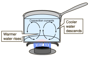 convection,  | form of heat transfer where a fluid moves the heat from object to object |
