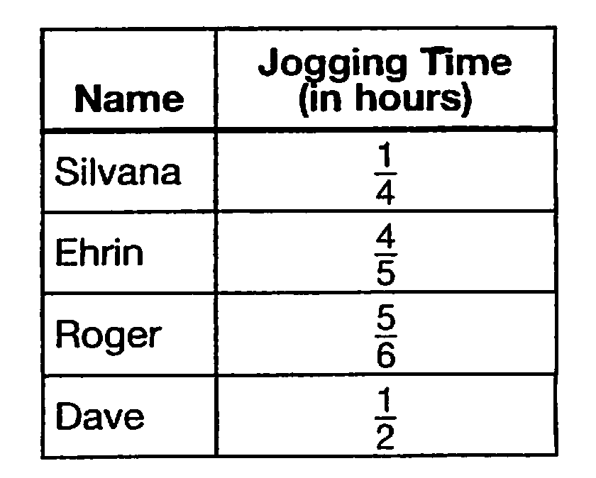Every day four friends go jogging. The table shows the daily jogging time of each friend. Whose time would be plotted at 0.25 on a number line.,  | Silvana |