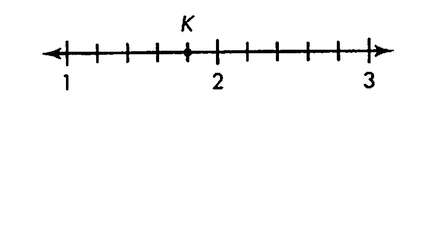 Which number represents point K on the number line?,  | 1_4/5 |