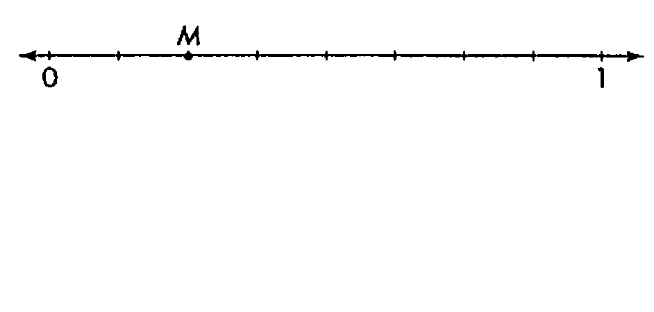 What are two fractions that represent point M?,  | 2/8 and 1/4 |