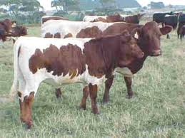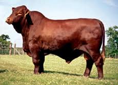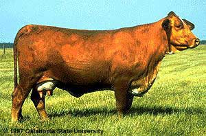 | Developed at the King Ranch in TX, the breed is 5/8 Shorthorn and 3/8 Brahman | Santa Gertrudis |