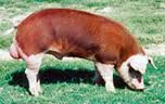 | This Australian breed, known as the "skunk breed" has pigmented skin under its red coat and has white markings on the back, tail and barrel. Especially noted for feed conversion and higher than average weaning weight. | Pinzgauer |