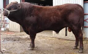 | This French breed is horned, dark red and is noted for its rapid gain | Saler |