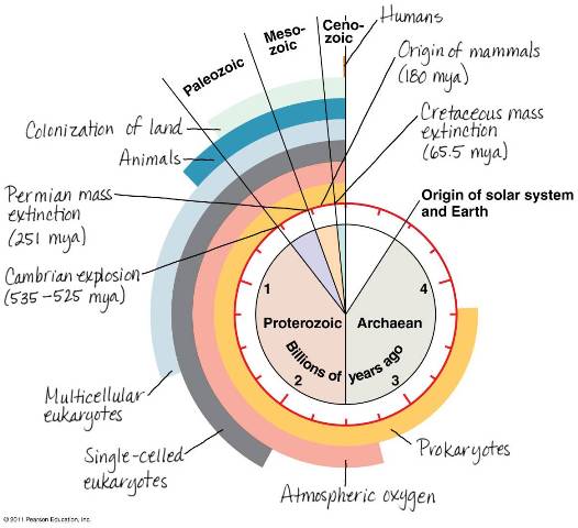 Prokaryotes were the only life forms from at least _____ to ______ years ago. | 3.5 billion to 2.1 billion p514 |