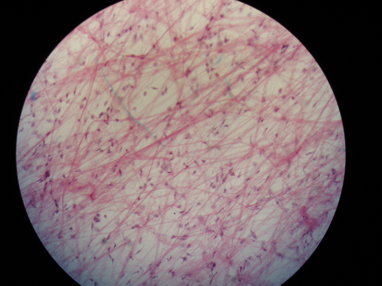 | Fibrocartilage, lacunae, chondrocytes, collagen fibers |