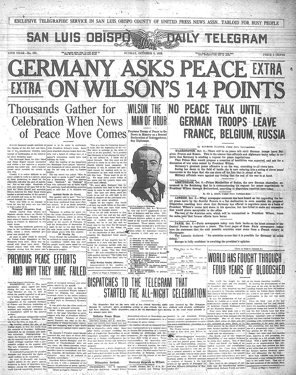 14 Points,  | Wilson's Plan; League of nations, Freedom of seas, self-determination |