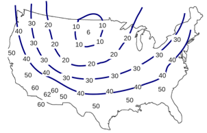 | Isotherm | A line on a weather map that has equal temperatures.,  |